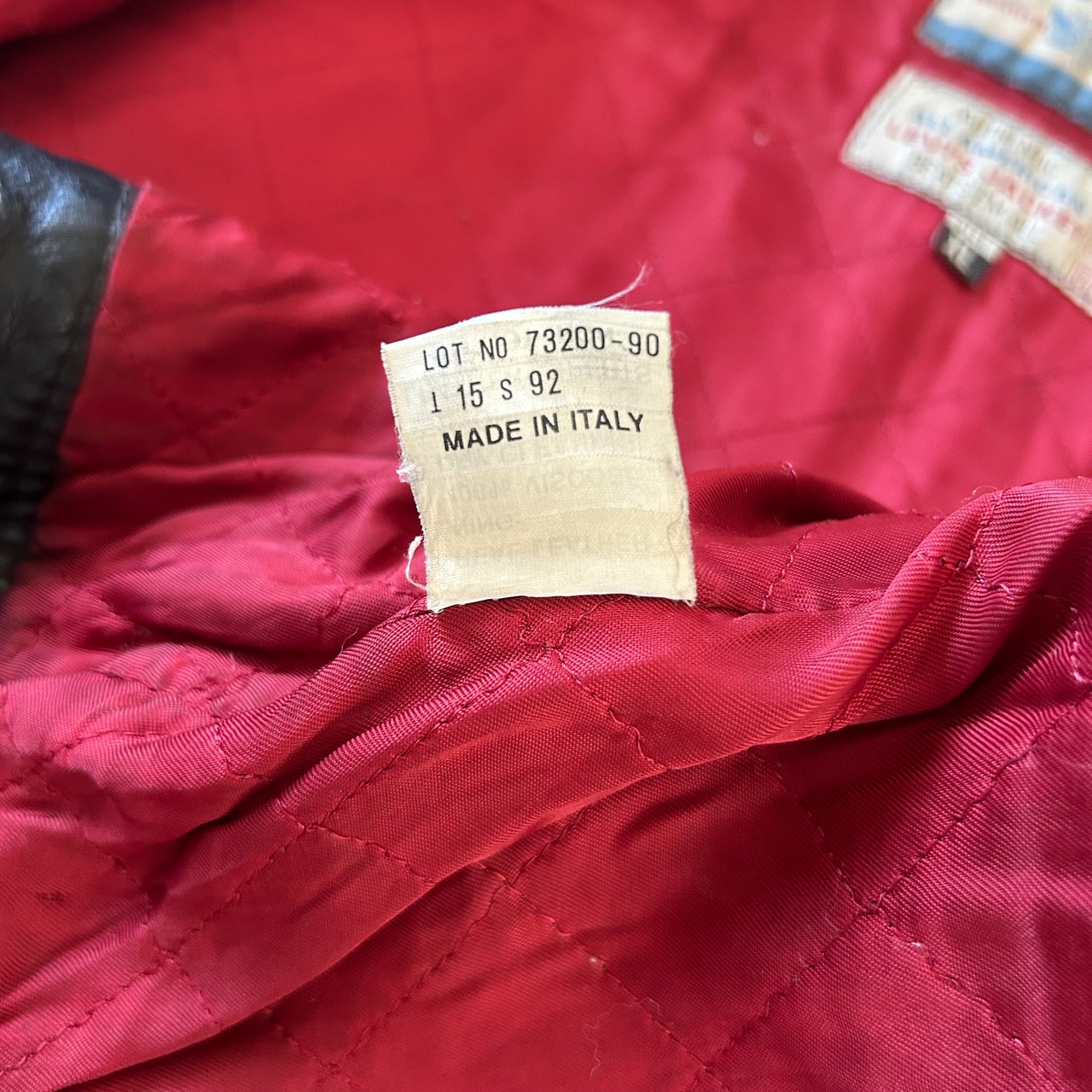 赤のキルティングライナーが特徴的で、