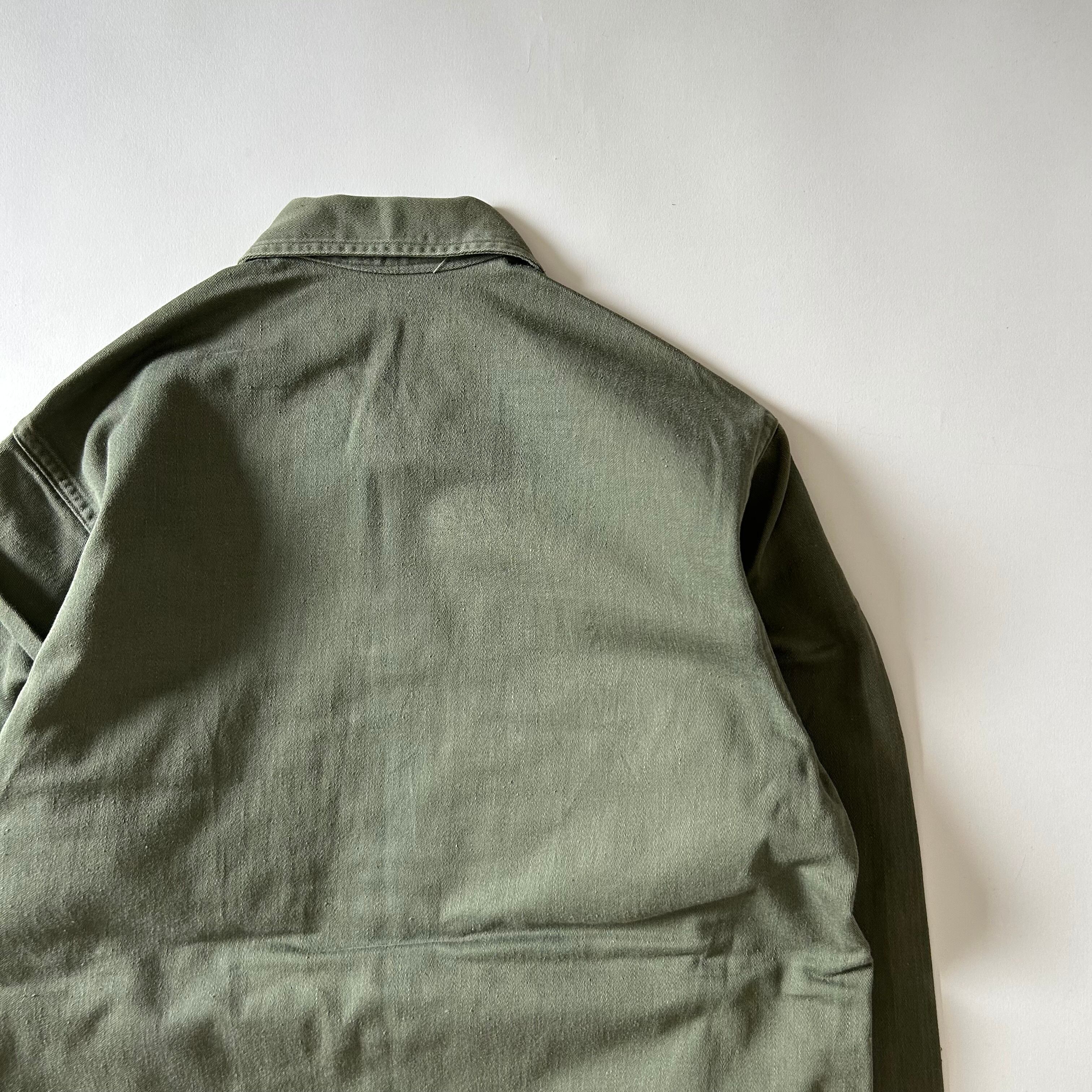 ポケット形状や全体の佇まいからは1960年代後半〜1970年代前半頃のOG-107ユーティリティシャツ文脈が感じられる個体です。